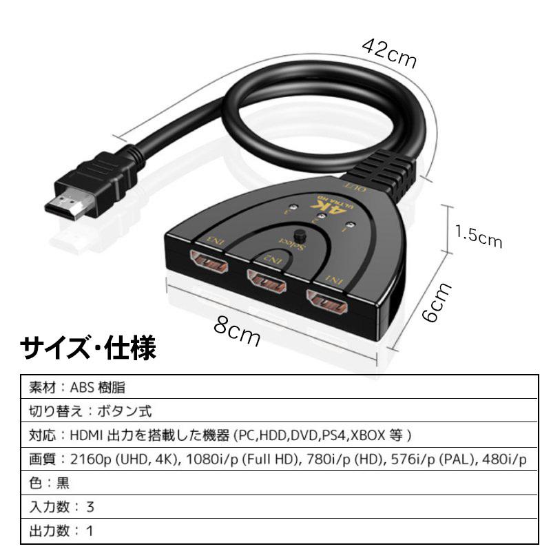 Hdmi分配器 切替器 Hdmiセレクター ディスプレイ 複数 テレビ Pc ゲーム機 3入力 1